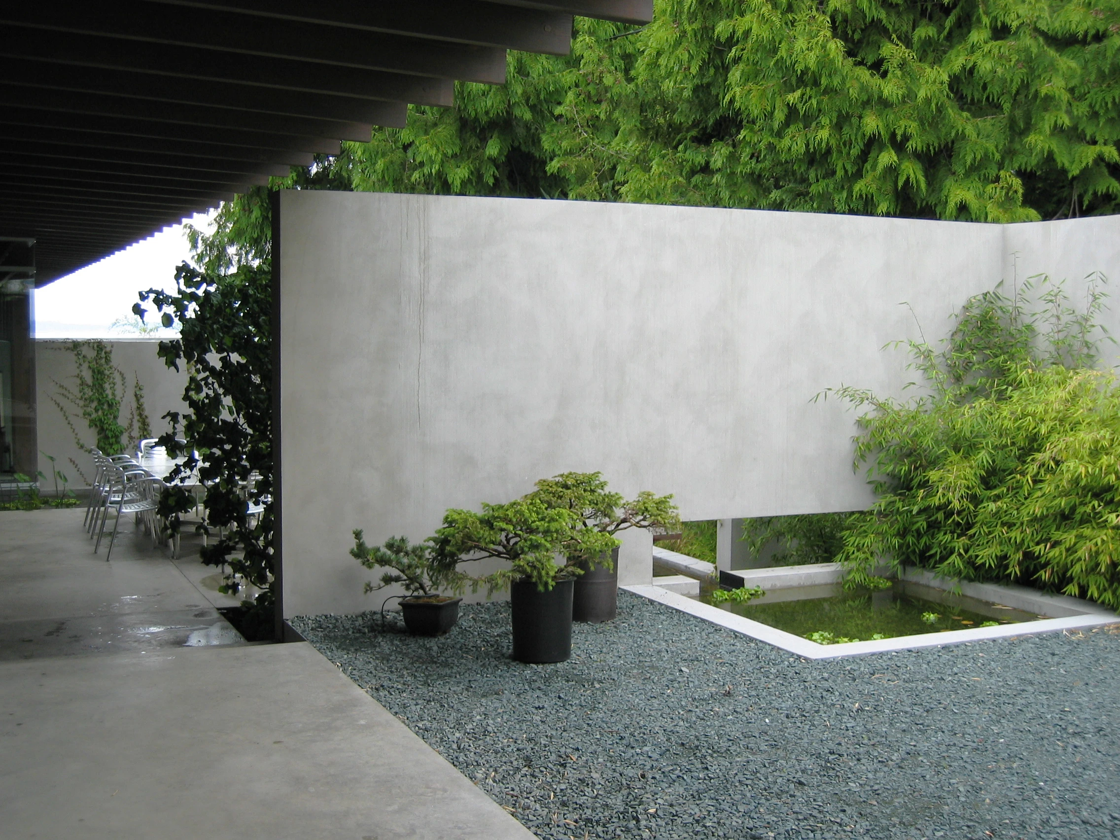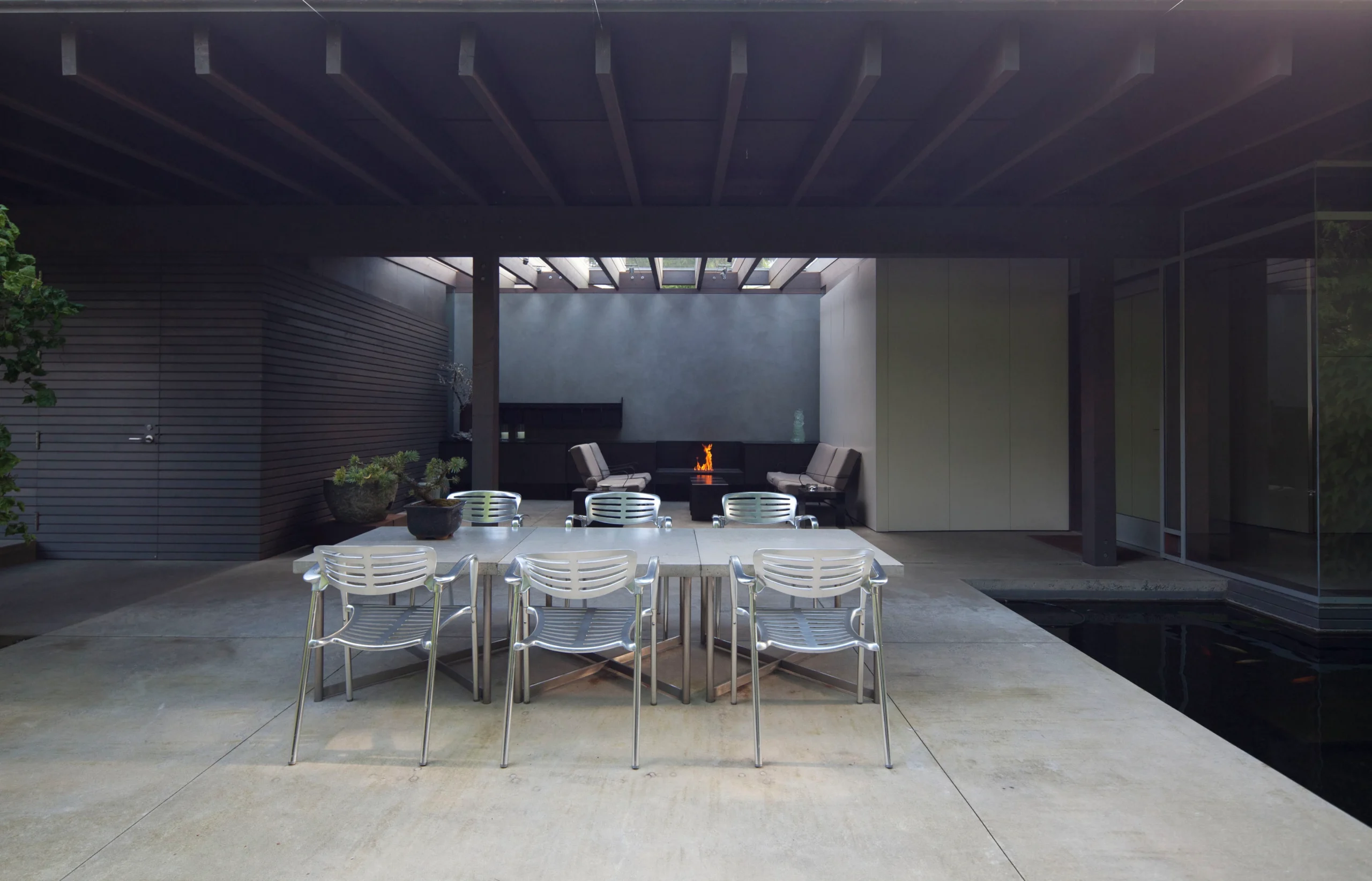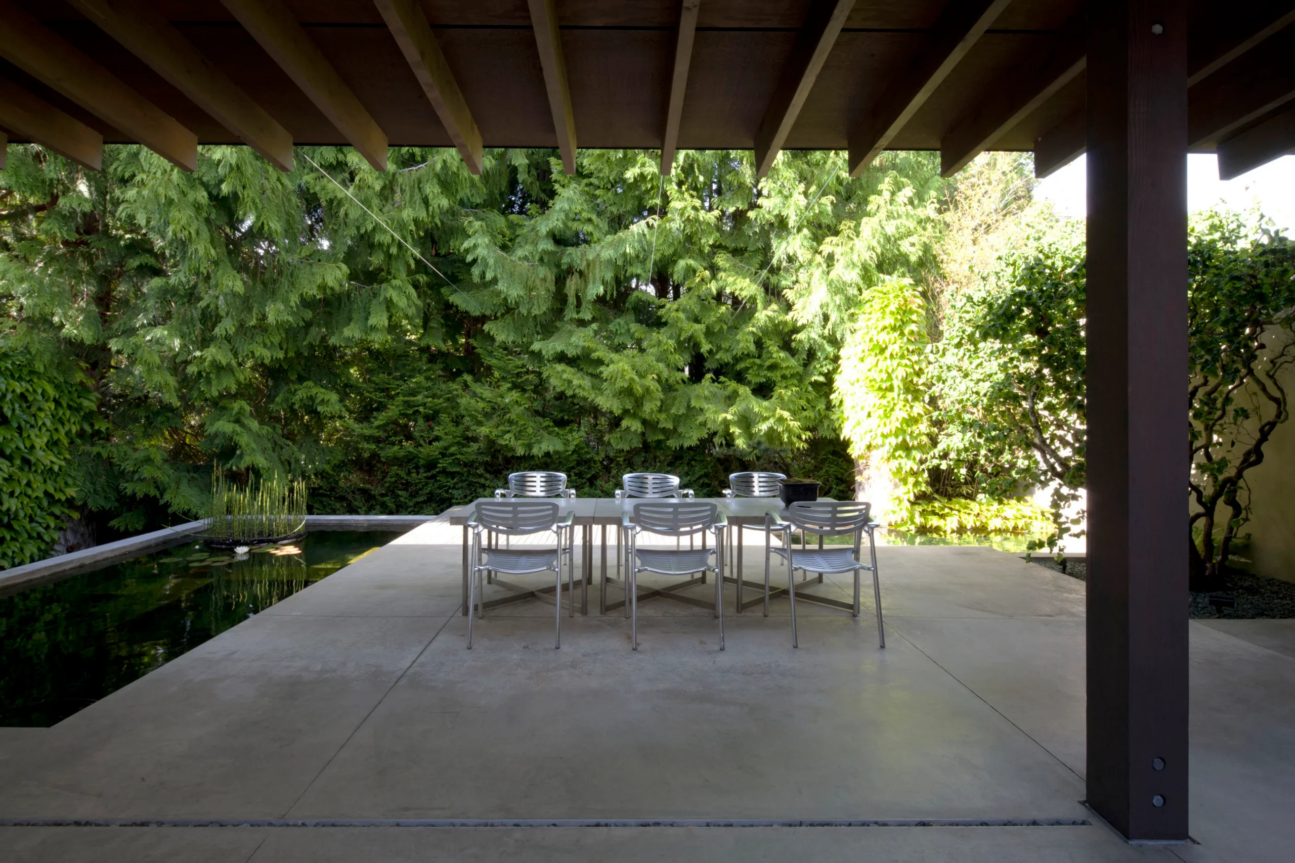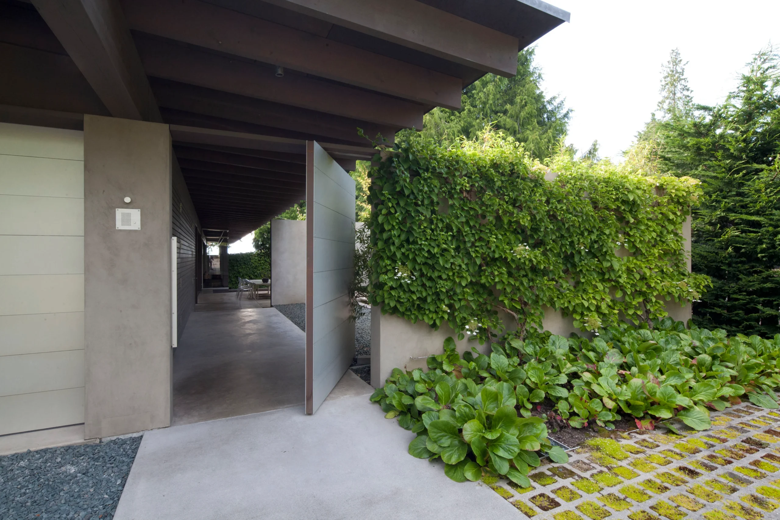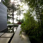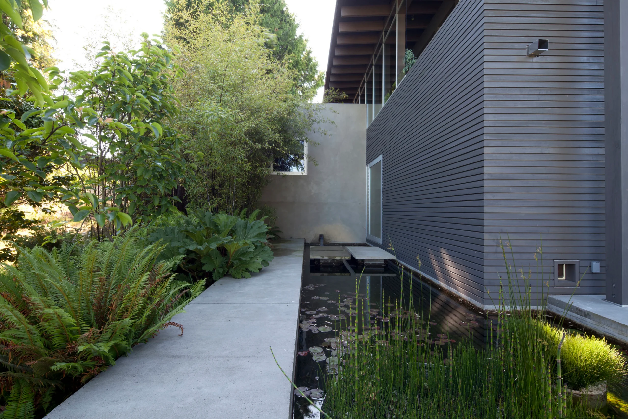 The winner of an AIA Honor Award in 2003, architect jurors Shigeru Ban of Tokyo and Brigitte Shim of Toronto said of this project: “The Fauntleroy Residence stands out as an instance of masterful design, an achievement of international stature…Seattle’s climate – mild, sometimes wet, sometimes dry – is welcomed with deep overhanging eaves and the patient sequencing of rooms alternately open and enclosed, covered and uncovered… A continuous stream engages the house along its northern edge, narrowing and then pooling in the way that people, moving through the house, flow or pause and then gather… a world class achievement.”