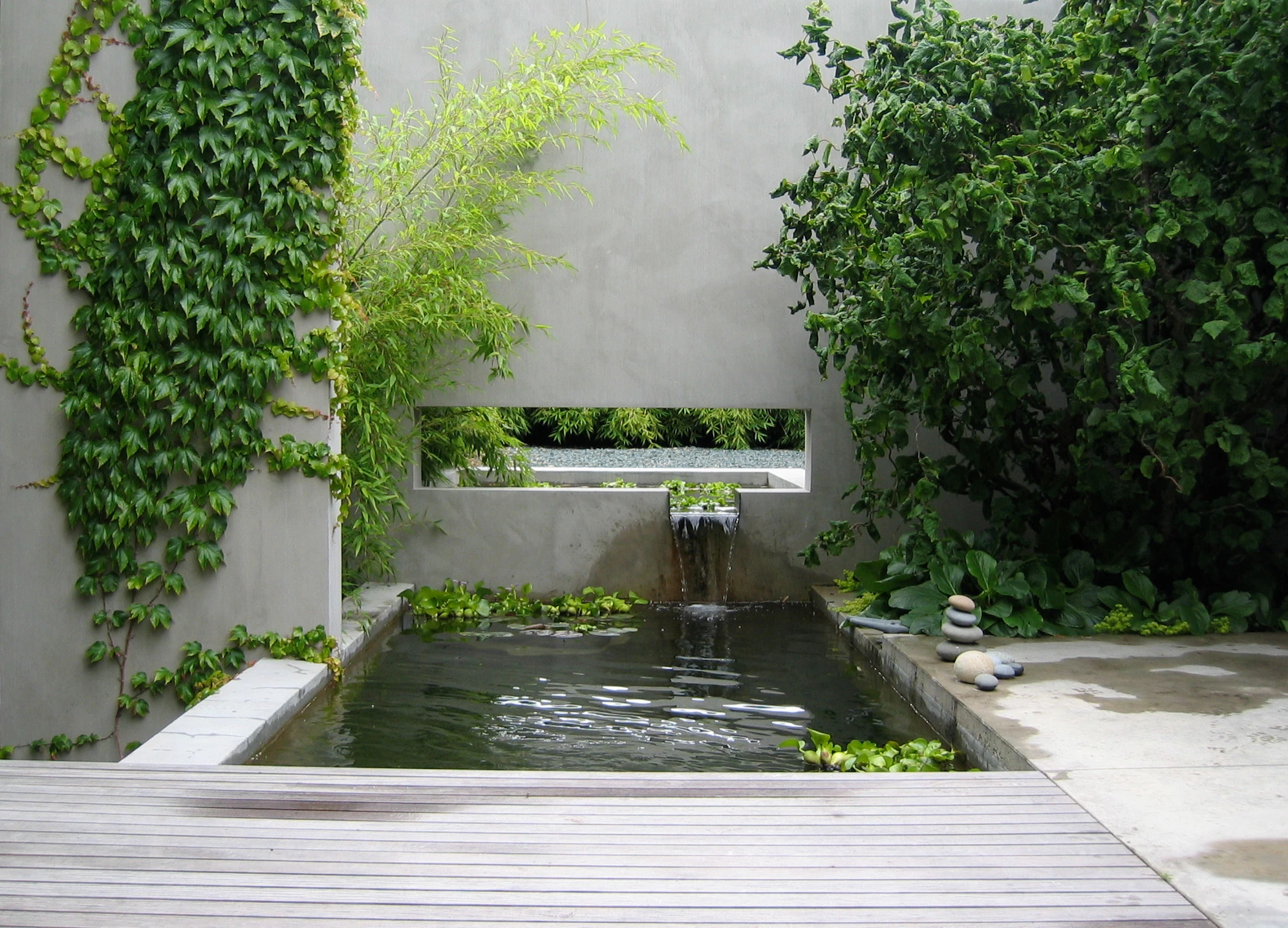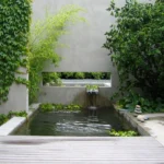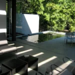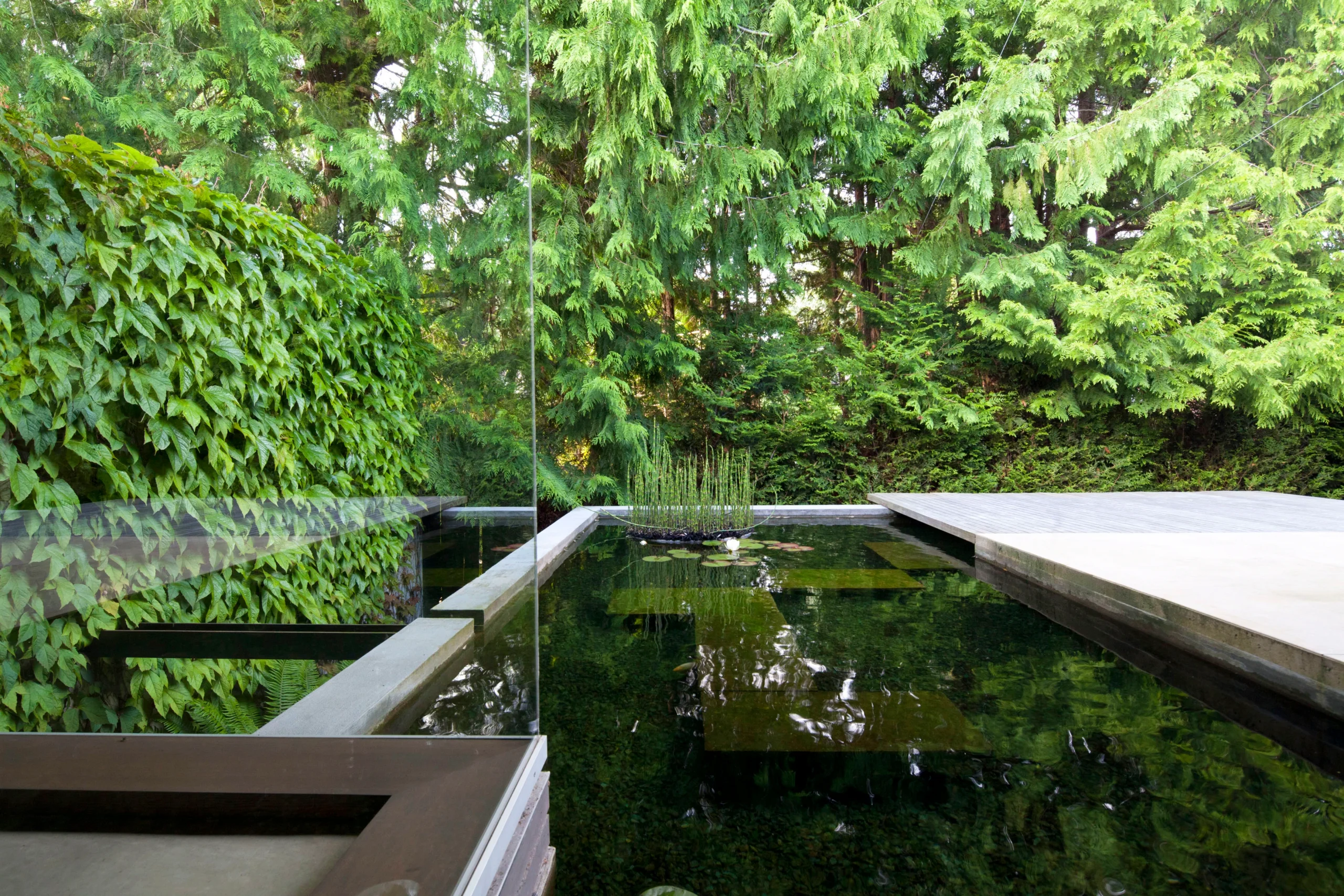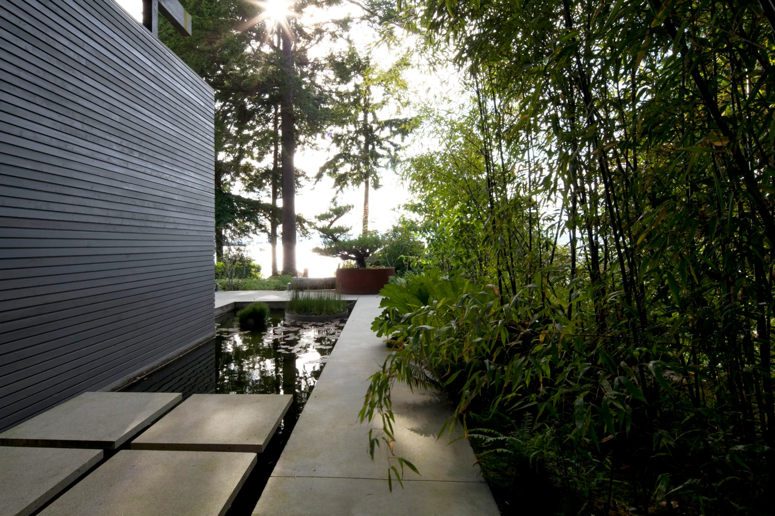 This site was designed in collaboration with the architect and owner to demonstrate the power, mystery and magic of spatial and programmatic ambiguity. The journey from street to beach involves a series of framed views, borrowed scenery, the flow of water and a blending of architecture and landscape so seamless it is often difficult to tell if one is inside or outside.